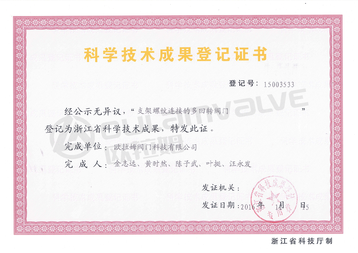浙江省科學(xué)技術(shù)成果科學(xué)技術(shù)成果:支架螺紋連接的多回轉(zhuǎn)閥門