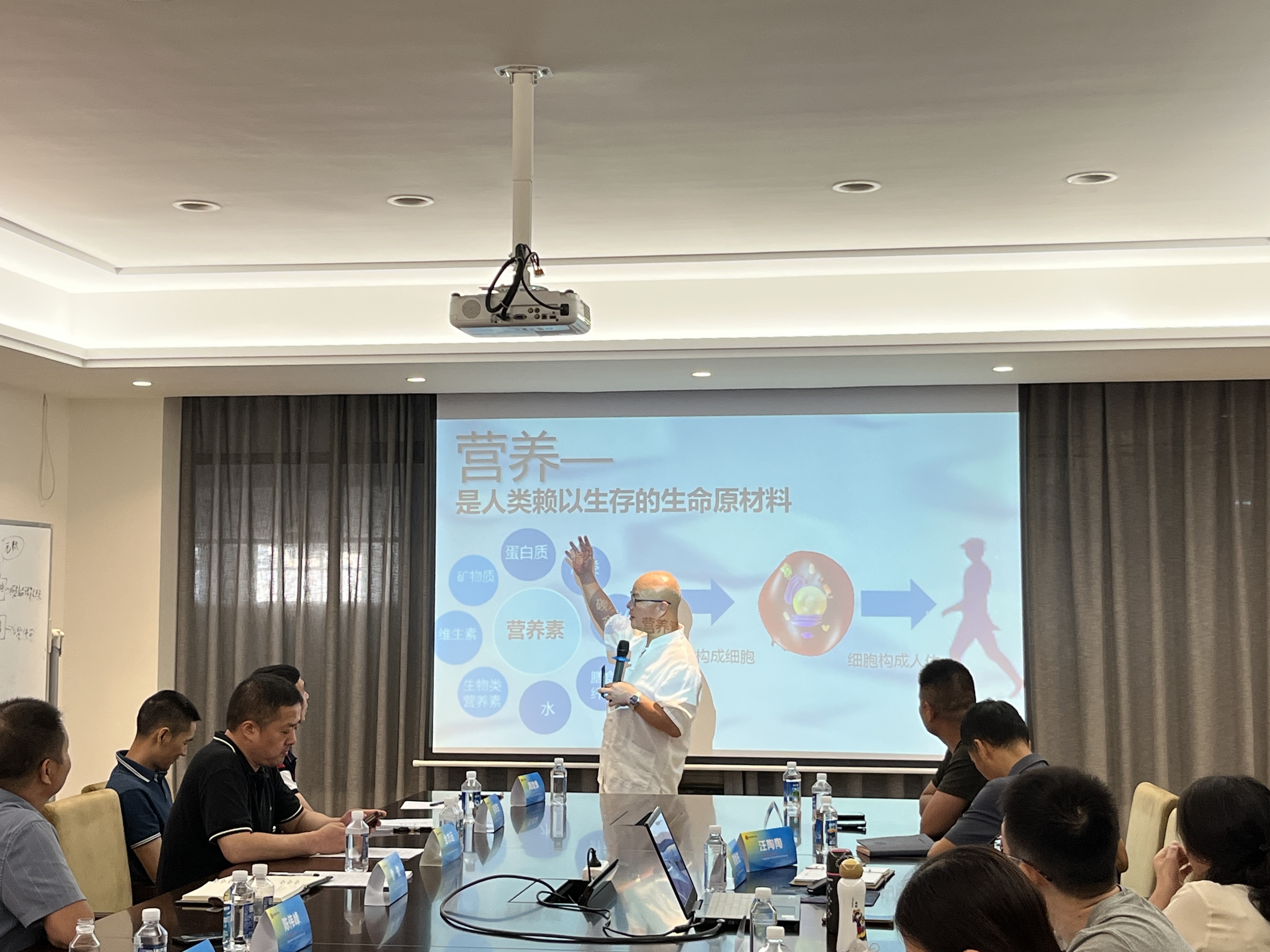 會議還特別邀請浙江省大眾健康科學(xué)研究院副院長周煜佐、溫州南塘中醫(yī)藥發(fā)展有限公司陳國芝老師,為與會人員做了精彩的全民健康營養(yǎng)知識講座。周煜佐深入淺出地講解了營養(yǎng)素的重要性,幫助我們糾正了日常生活中的一些營養(yǎng)知識誤區(qū)。陳國芝則分享了“治未病”的理念,強調(diào)健康生活方式的重要性。