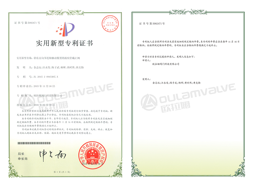 帶有萬向節(jié)連軸驅(qū)動裝置的波紋管截止閥