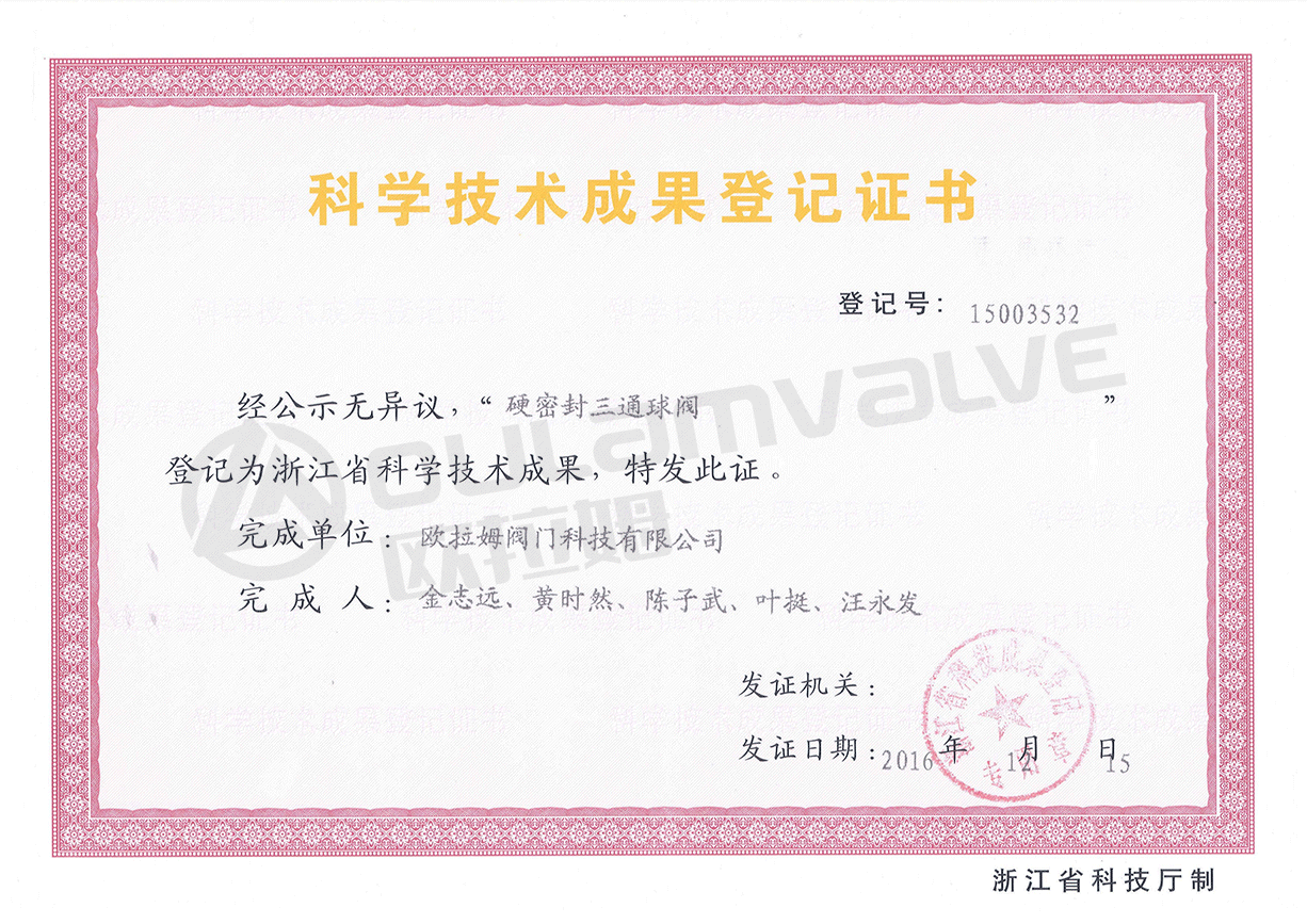 浙江省科學(xué)技術(shù)成果科學(xué)技術(shù)成果:硬密封三通球閥