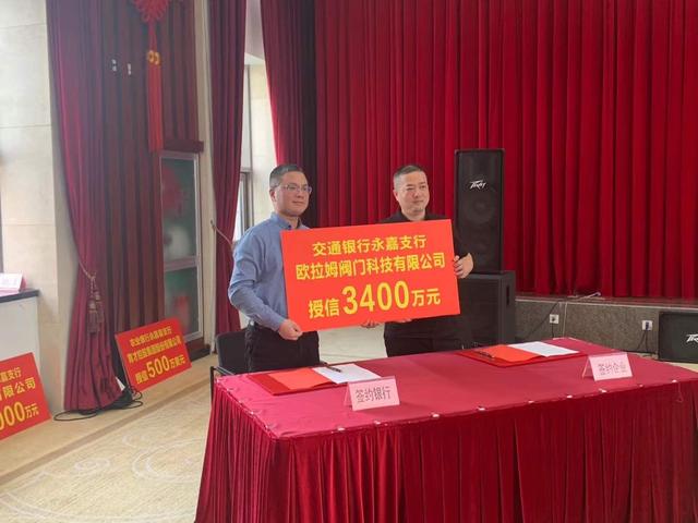 會(huì)議還舉行了簽約儀式,各金融機(jī)構(gòu)以實(shí)際行動(dòng)加大金融服務(wù)實(shí)體經(jīng)濟(jì)的力度。記者了解到,其中交通銀行永嘉支行與歐拉姆閥門(mén)科技有限公司“強(qiáng)強(qiáng)聯(lián)手”,簽訂了智能化改造企業(yè)融資意向書(shū),授信3400萬(wàn)元。